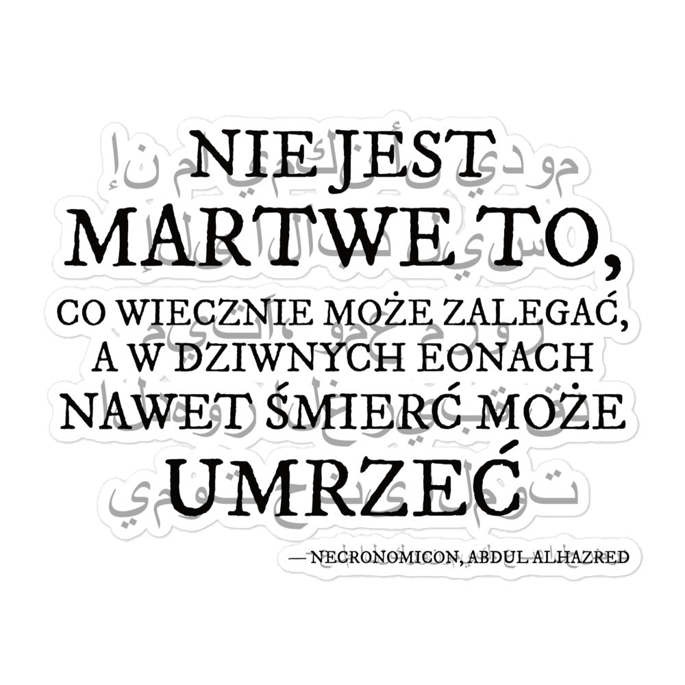 „Nie jest martwe…“ – Cytat z Necronomiconu po arabsku i polsku Naklejki bez pęcherzyków powietrza